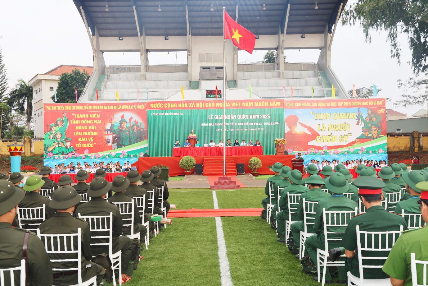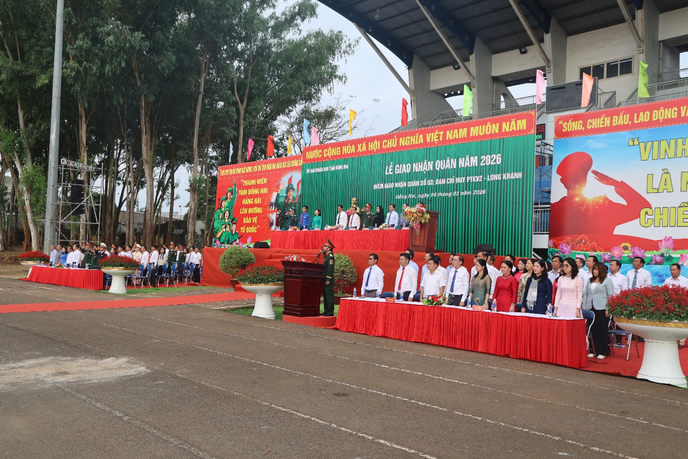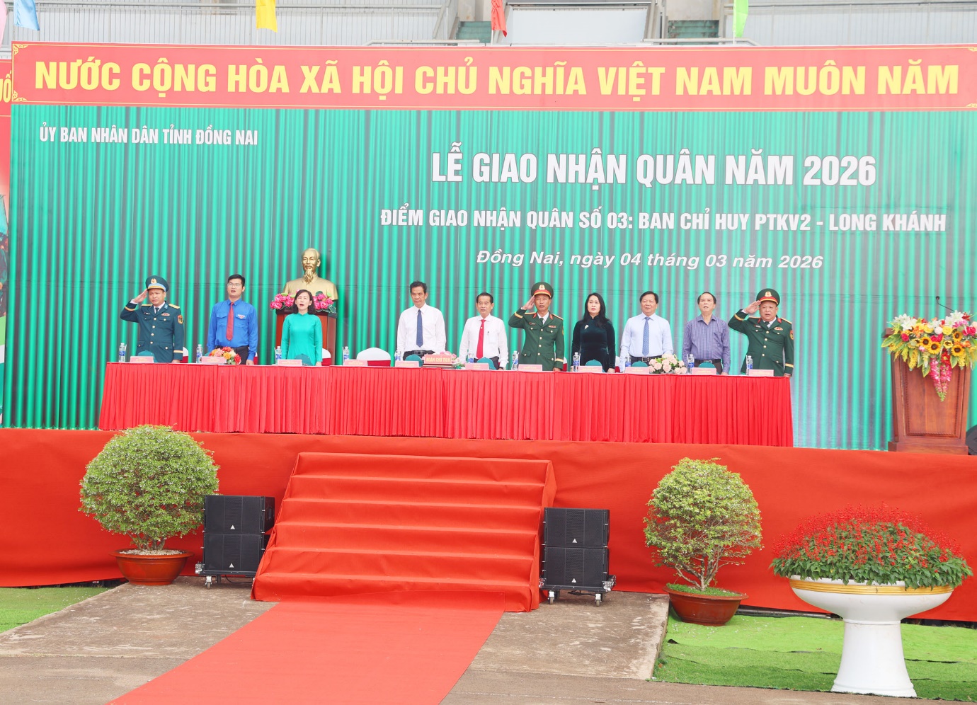 Sáng ngày 04/03, tại Điểm giao nhận quân số 3, Ban Chỉ huy Phòng thủ khu vực 2 - Long Khánh (Sân vận động Long Khánh, phường Long Khánh, tỉnh Đồng Nai) đã long trọng tổ chức Lễ giao nhận quân năm 2026. Dự và chủ trì buổi lễ có đồng chí Thái Bảo, Phó Bí thư Tỉnh ủy.