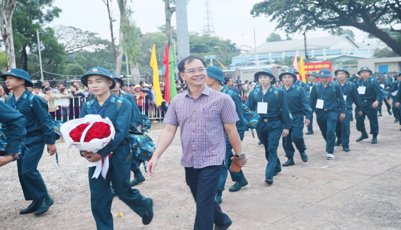Phát biểu tại buổi lễ, Phó Bí thư Tỉnh ủy Thái Bảo chia sẻ: Thực hiện nghĩa vụ quân sự không chỉ là trách nhiệm, là quyền và nghĩa vụ của mỗi công dân mà đó còn là niềm vinh hạnh, niềm tự hào lớn lao của mỗi thanh niên chúng ta. Hôm nay, các thanh niên tỉnh Đồng Nai đã tiếp bước cha anh lên đường nhập ngũ, các đồng chí sẽ trở thành những chiến sĩ được học tập, được rèn luyện trong môi trường kỷ luật, tự giác, nghiêm minh để thực hiện nhiệm vụ thiêng liêng bảo vệ tổ quốc Việt Nam xã hội chủ nghĩa. Cấp ủy, chính quyền và Nhân dân địa phương luôn mong muốn và tin tưởng các tân binh nhận thức đầy đủ trách nhiệm, nghĩa vụ của mình đối với quê hương, đất nước; tiếp tục phát huy truyền thống các thế hệ đi trước; dù trong bất cứ điều kiện, hoàn cảnh nào cũng phải đoàn kết, khắc phục khó khăn, hoàn thành tốt nhiệm vụ được giao.