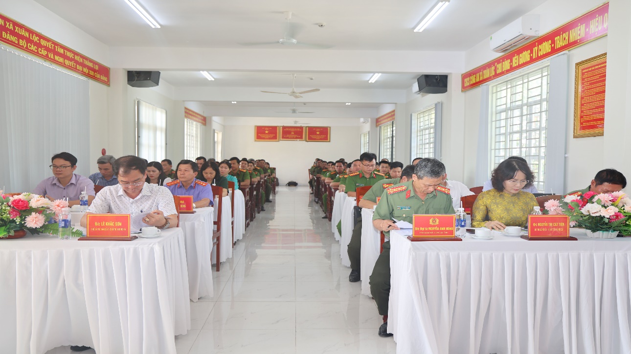 Dự và chỉ đạo hội nghị có Đại tá Nguyễn Anh Hùng – Phó Giám đốc Công an tỉnh Đồng Nai; đồng chí Nguyễn Thị Cát Tiên – Bí thư Đảng ủy, Chủ tịch HĐND xã; đồng chí Lê Khắc Sơn – Phó Bí thư Đảng ủy, Chủ tịch UBND xã Xuân Lộc.