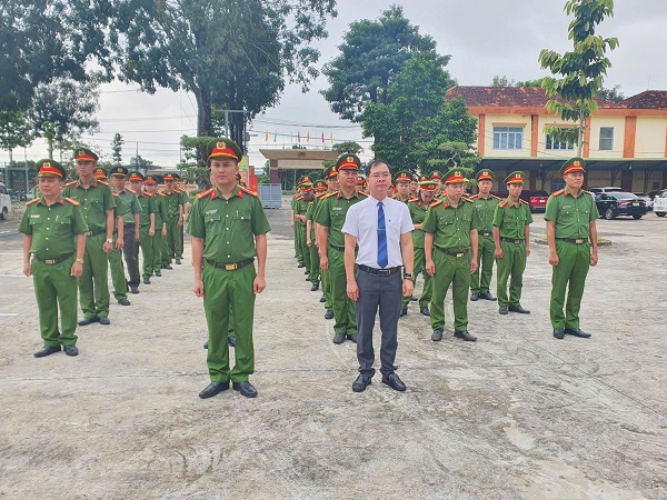 Đồng chí Lê Khắc Sơn - Phó Bí thư Đảng ủy, Chủ tịch UBND xã Xuân Lộc dự lễ chào cờ tháng 11 tại Công an xã Xuân Lộc