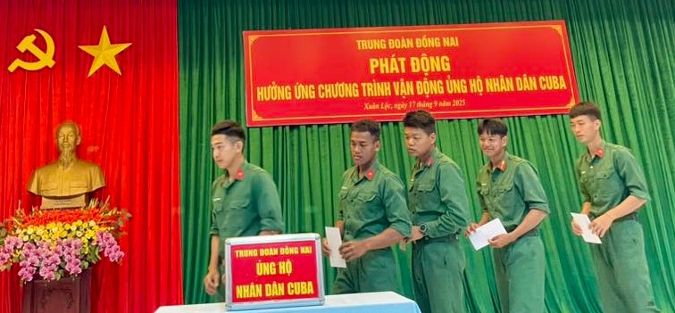 Sau lễ phát động, cán bộ, chiến sĩ Trung đoàn đã nhiệt tình hưởng ứng, đóng góp một phần thu nhập để sẻ chia với nhân dân Cuba – đất nước vốn có mối quan hệ hữu nghị, đoàn kết thủy chung, trong sáng với Việt Nam suốt nhiều thập kỷ qua.