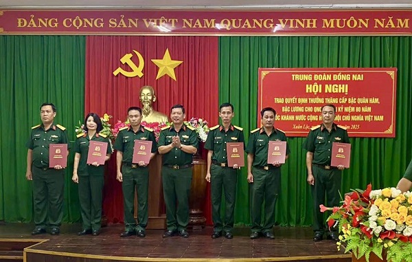 Chiều 02/10/2025, Trung đoàn Đồng Nai, đơn vị đóng chân trên địa bàn xã Xuân Lộc long trọng tổ chức Hội nghị công bố và trao quyết định thăng cấp bậc quân hàm, nâng bậc lương cho các quân nhân chuyên nghiệp đang công tác tại đơn vị.