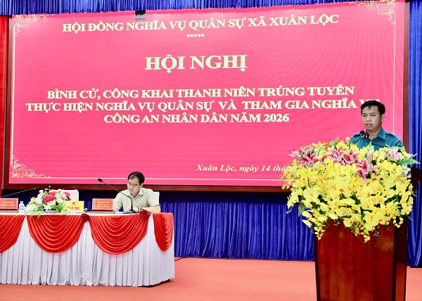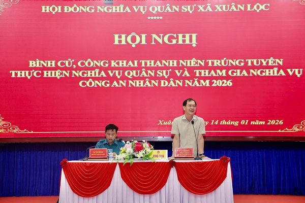 Sáng 14-1, Hội đồng nghĩa vụ quân sự (NVQS) xã Xuân Lộc tổ chức hội nghị bình cử, công khai thanh niên trúng tuyển thực hiện nghĩa vụ Quân sự và tham gia nghĩa vụ Công an nhân dân năm 2026.