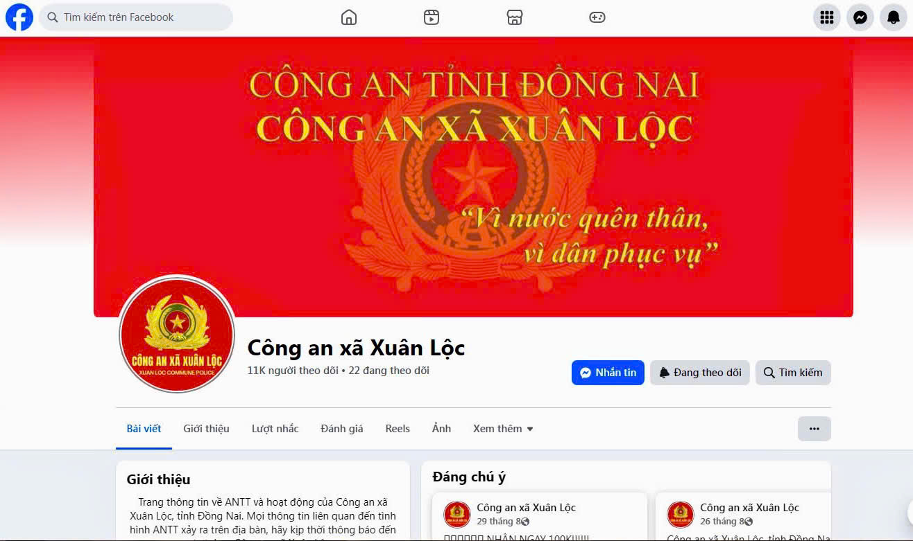 Trang thông tin chính thức của Công an xã Xuân Lộc trên nền tảng Facebook