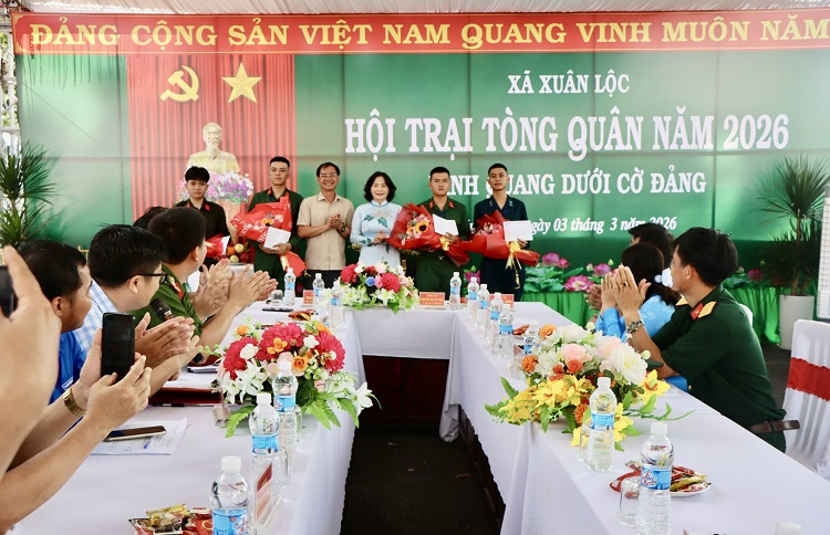 Trong khuôn khổ chương trình của Hội trại tòng quân năm 2026, xã Xuân Lộc đã tổ chức cho các tân binh xem phim tư liệu truyền thống; viếng đền thờ liệt sĩ Xuân Lộc. Dịp này, Đảng ủy xã Xuân Lộc đã tổ chức gặp mặt 4 thanh niên là đảng viên nhập ngũ năm 2026. Tại buổi gặp mặt, Bí thư Đảng ủy, Chủ tịch HĐND xã Xuân Lộc Nguyễn Thị Cát Tiên đã chúc mừng, động viên và dặn dò các thanh niên là đảng viên luôn nêu cao tinh thần trách nhiệm, thể hiện được tính tiền phong, gương mẫu đi đầu trong học tập rèn luyện để xứng danh với truyền thống quê hương Xuân Lộc anh hùng.