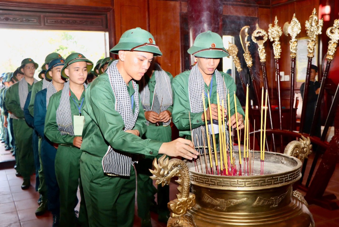 Lãnh đạo xã Xuân Lộc cùng các thanh niên trúng tuyển nghĩa vụ quân sự, nghĩa vụ công an viếng Đền thờ Liệt sĩ Xuân Lộc