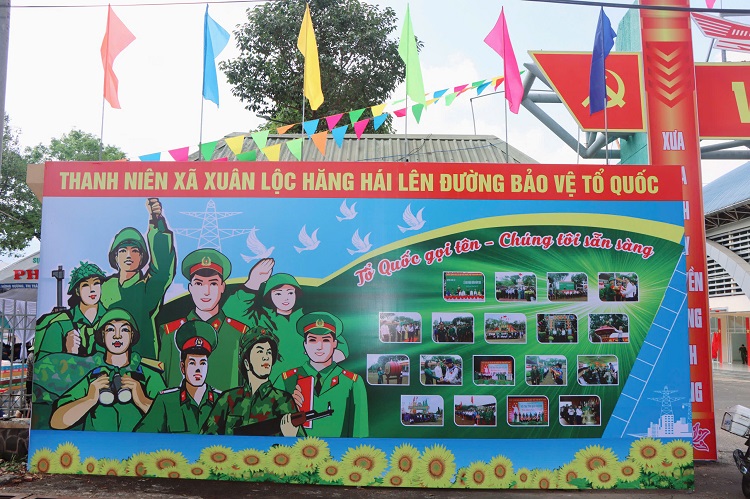 Theo đó, Hội trại tòng quân xã Xuân Lộc năm nay được tổ chức đơn giản nhưng không kém phần trang trọng, đẹp mắt. Không khí hội trại tòng quân diễn ra hết sức náo nhiệt, các khẩu hiệu, pano, áp phích tuyên truyền, động viên tinh thần thanh niên hăng hái lên đường nhập ngũ được bố trí tràn ngập trong không gian hội trại.