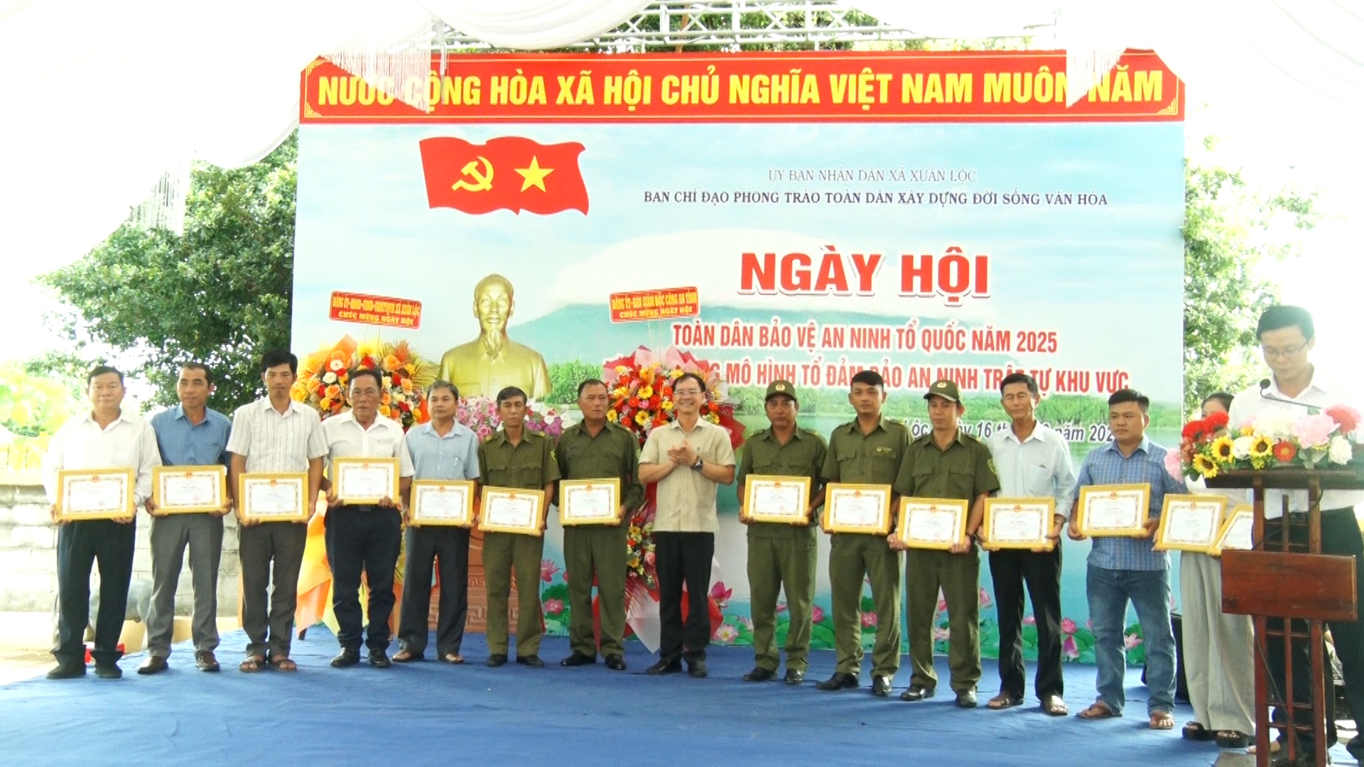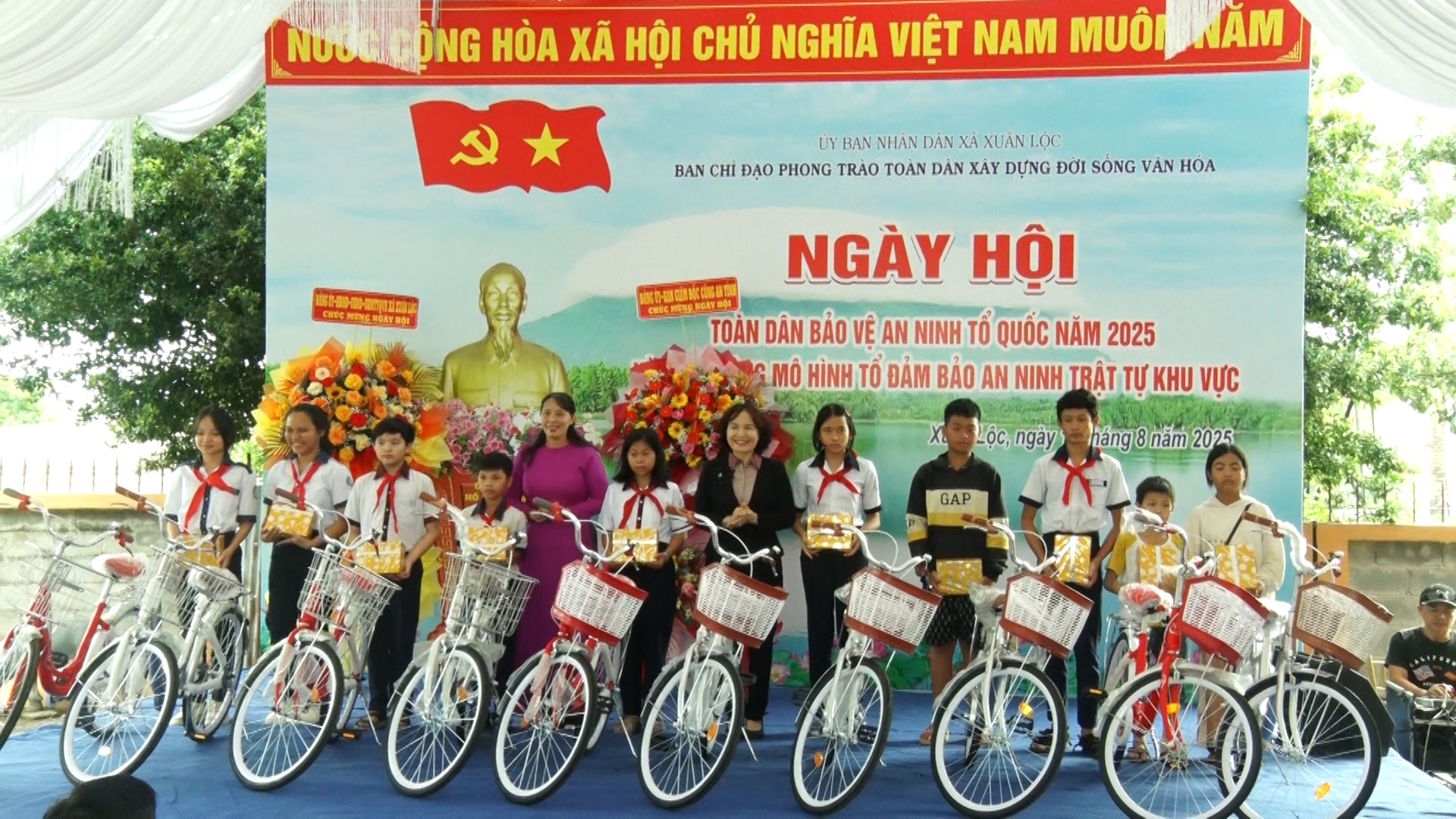 Dịp này, Ban chỉ đạo phong trào toàn dân đoàn kết xây dựng đời sống văn hóa xã Xuân Lộc cũng đã vận động các đơn vị, mạnh thường quân hỗ trợ trao tặng 1 căn nhà đại đoàn kết, 10 xe đạp và 100 phần quà cho các hộ nghèo, học sinh có hoàn cảnh khó khăn với số tiền trên 150 triệu đồng. Đồng thời tuyên dương, trao thưởng 3 tập thể, 15 cá nhân có thành tích xuất sắc trong phong trào toàn dân bảo vệ an ninh Tổ quốc năm 2025 trên địa bàn xã.