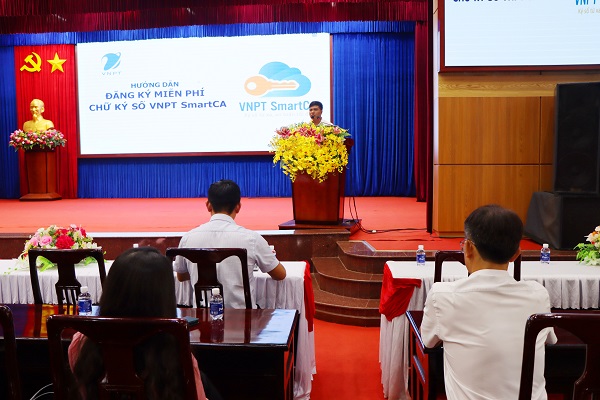 Đại diện VNPT giới thiệu tổng quan về chữ ký số, những lợi ích khi sử dụng trong giao dịch điện tử, nộp hồ sơ thủ tục hành chính và thanh toán trực tuyến