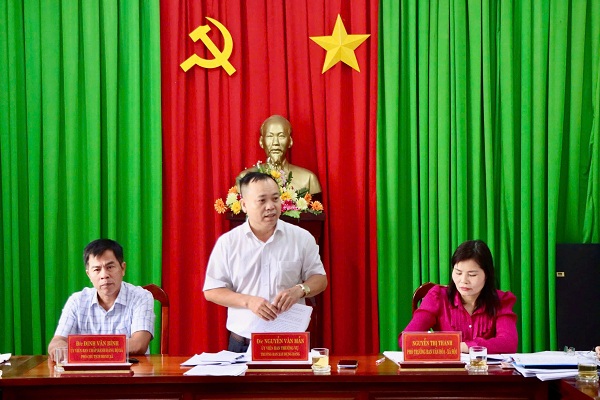 Đồng chí Nguyễn Văn Mẫn, Uỷ viên Ban Thường vụ, Trưởng Ban xây dựng Đảng, Trưởng Ban Văn hoá - Xã hội HĐND xã phát biểu tại cuộc họp