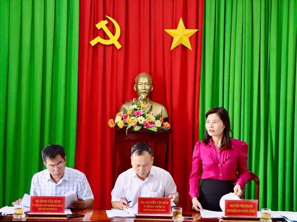 Đồng chí Nguyễn Thị Thanh, Phó Trưởng Ban Văn hoá - Xã hội HĐND xã phát biểu ý kiến tại cuộc họp