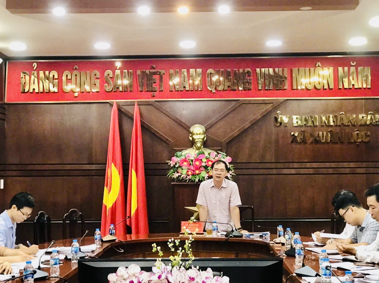 Đồng chí Lê Khắc Sơn - Phó Bí thư Đảng ủy, Chủ tịch UBND xã Xuân Lộc chủ trì buổi làm việc
