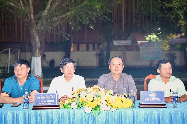 Phó Chủ tịch UBND xã Thân Anh Thiết (thứ 2 từ bên trái qua) cùng dự đêm diễn thứ hai của Chương trình Liên hoan nghệ thuật quần chúng "Mừng Đảng, mừng Xuân Bính Ngọ 2026"
