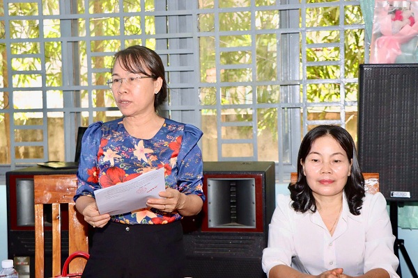 Đại diện trường THCS Lê Lợi báo cáo về công tác chuyển đổi số của nhà trường