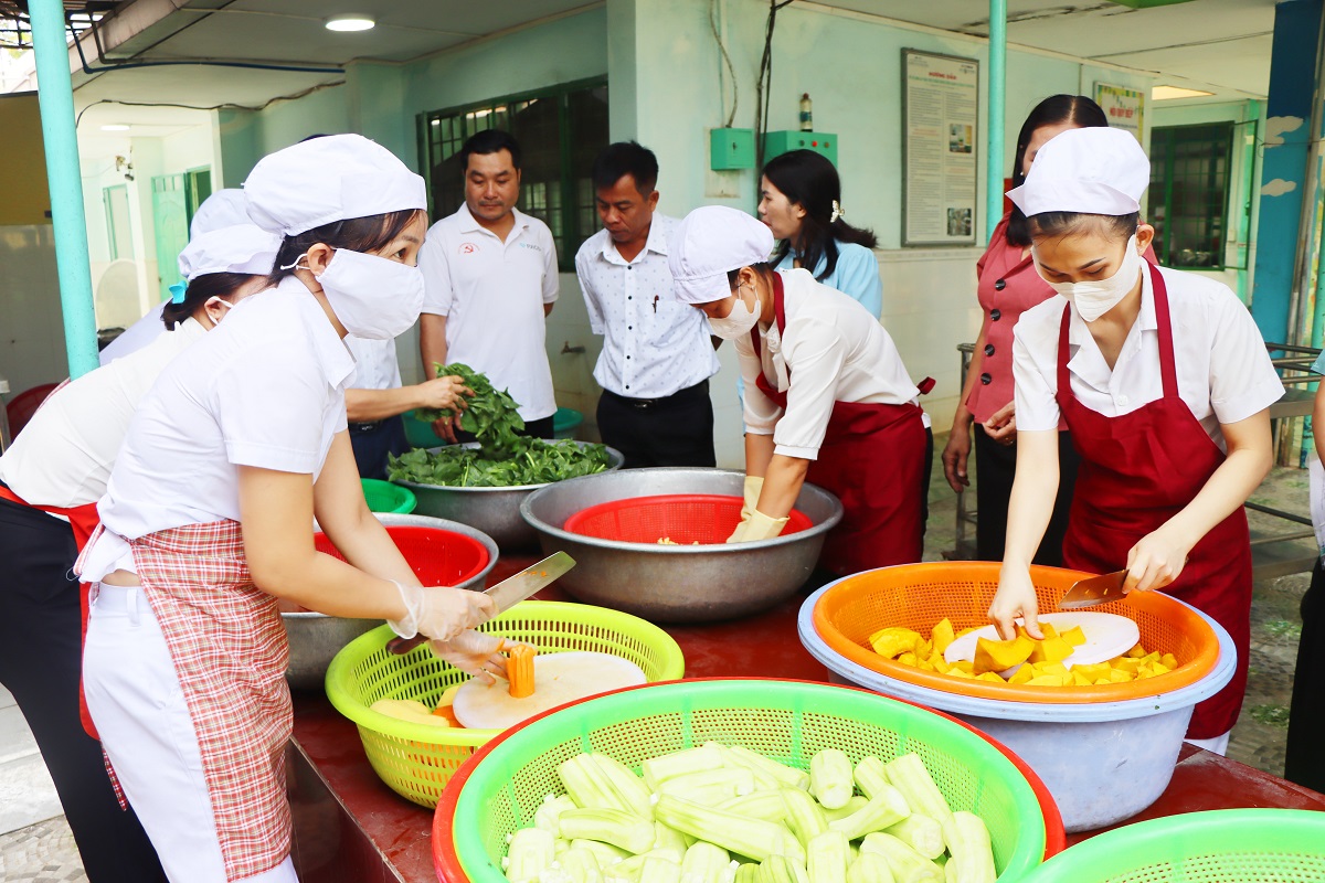 Công tác bảo đảm vệ sinh an toàn thực phẩm tại bếp ăn tập thể được thực hiện nghiêm túc theo quy trình một chiều; nguồn thực phẩm có nguồn gốc rõ ràng; hồ sơ, sổ sách được ghi chép đầy đủ. Nhà trường duy trì tốt việc lưu mẫu thức ăn, kiểm thực ba bước, đảm bảo không để xảy ra ngộ độc thực phẩm. Bên cạnh đó, công tác vệ sinh môi trường, xây dựng cảnh quan trường học được chú trọng. Các lớp học, khuôn viên, nhà vệ sinh được vệ sinh thường xuyên; cây xanh, bồn hoa được chăm sóc, tạo môi trường học tập thân thiện, an toàn cho trẻ. Công tác tuyên truyền về vệ sinh an toàn thực phẩm và bảo vệ môi trường được triển khai hiệu quả, góp phần nâng cao nhận thức của cán bộ, giáo viên, phụ huynh và học sinh.