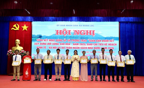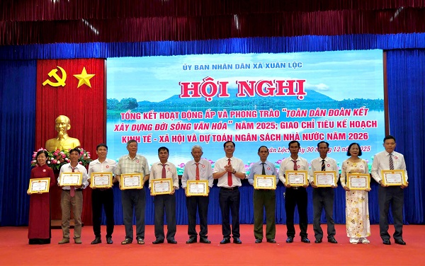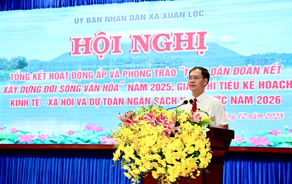 Sáng 30-12, Uỷ ban nhân dân xã Xuân Lộc tổ chức hội nghị tổng kết hoạt động ấp và phong trào “Toàn dân đoàn kết xây dựng đời sống văn hoá” năm 2025; giao chỉ tiêu kế hoạch kinh tế - xã hội và dự toán ngân sách nhà nước năm 2026.