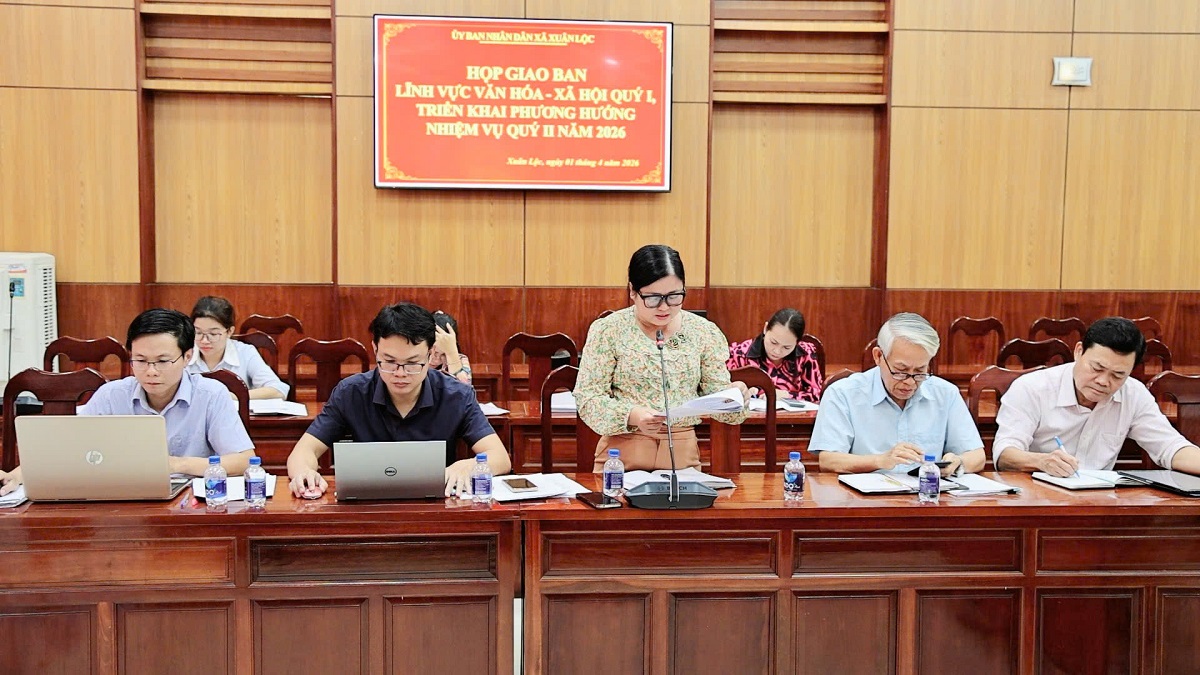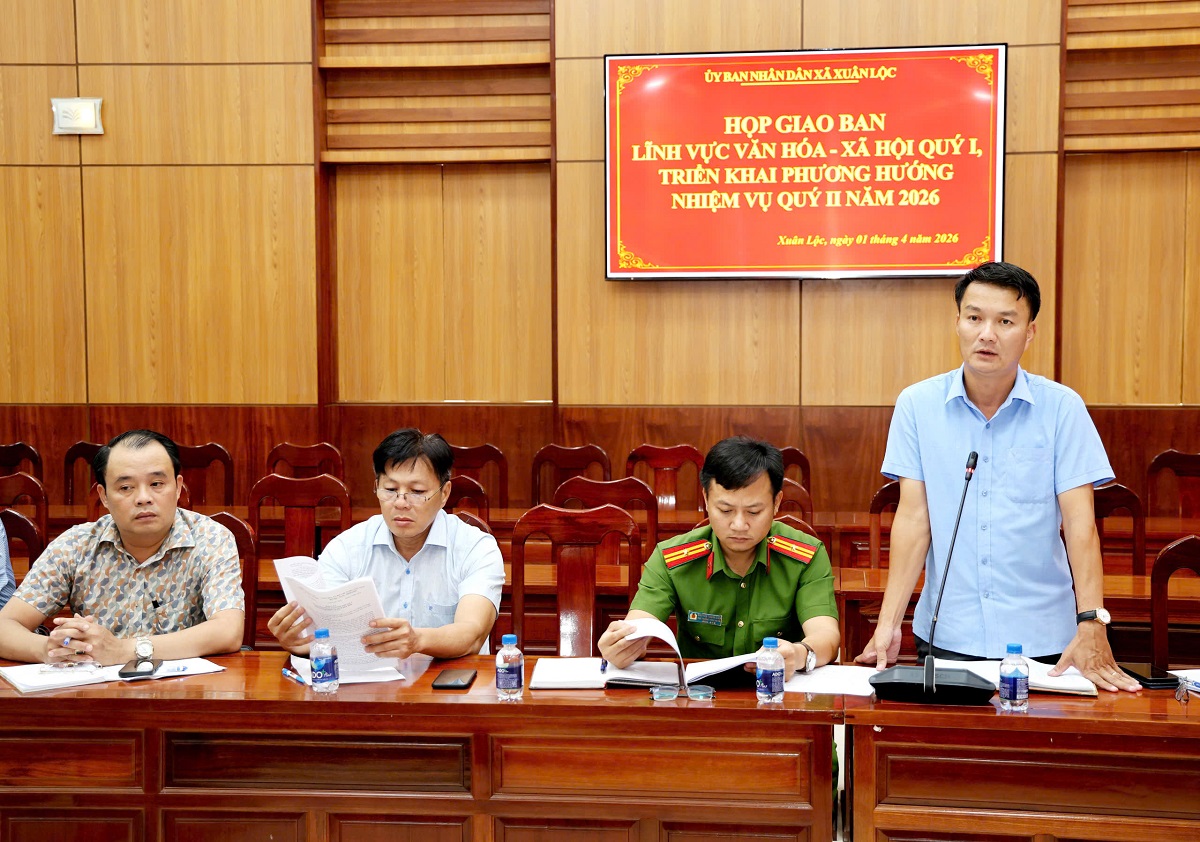 Chiều ngày 01/4, UBND xã Xuân Lộc tổ chức họp giao ban lĩnh vực văn hóa - xã hội quý I năm 2026, đồng thời triển khai phương hướng, nhiệm vụ quý II/2026. Đồng chí Thân Anh Thiết, Phó Chủ tịch UBND xã chủ trì cuộc họp.