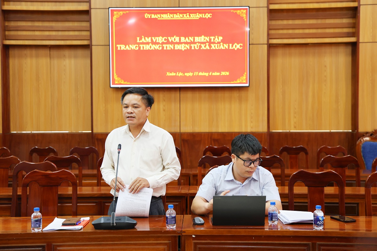 Chiều ngày 15/4, đồng chí Thân Anh Thiết, Phó Chủ tịch UBND xã Xuân Lộc, Trưởng ban Ban Biên tập Trang thông tin điện tử xã đã chủ trì buổi làm việc với Ban Biên tập, các cộng tác viên Trang thông tin điện tử xã nhằm đánh giá kết quả hoạt động trong 4 tháng đầu năm 2026 và đề ra phương hướng, nhiệm vụ trong thời gian tới.