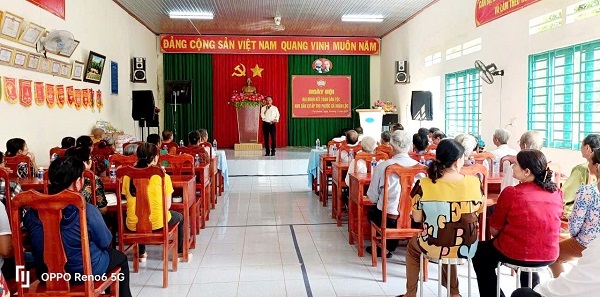 Các đại biểu cùng người dân trên địa bàn ấp dự Ngày hội Đại đoàn kết toàn dân tộc ở khu dân cư