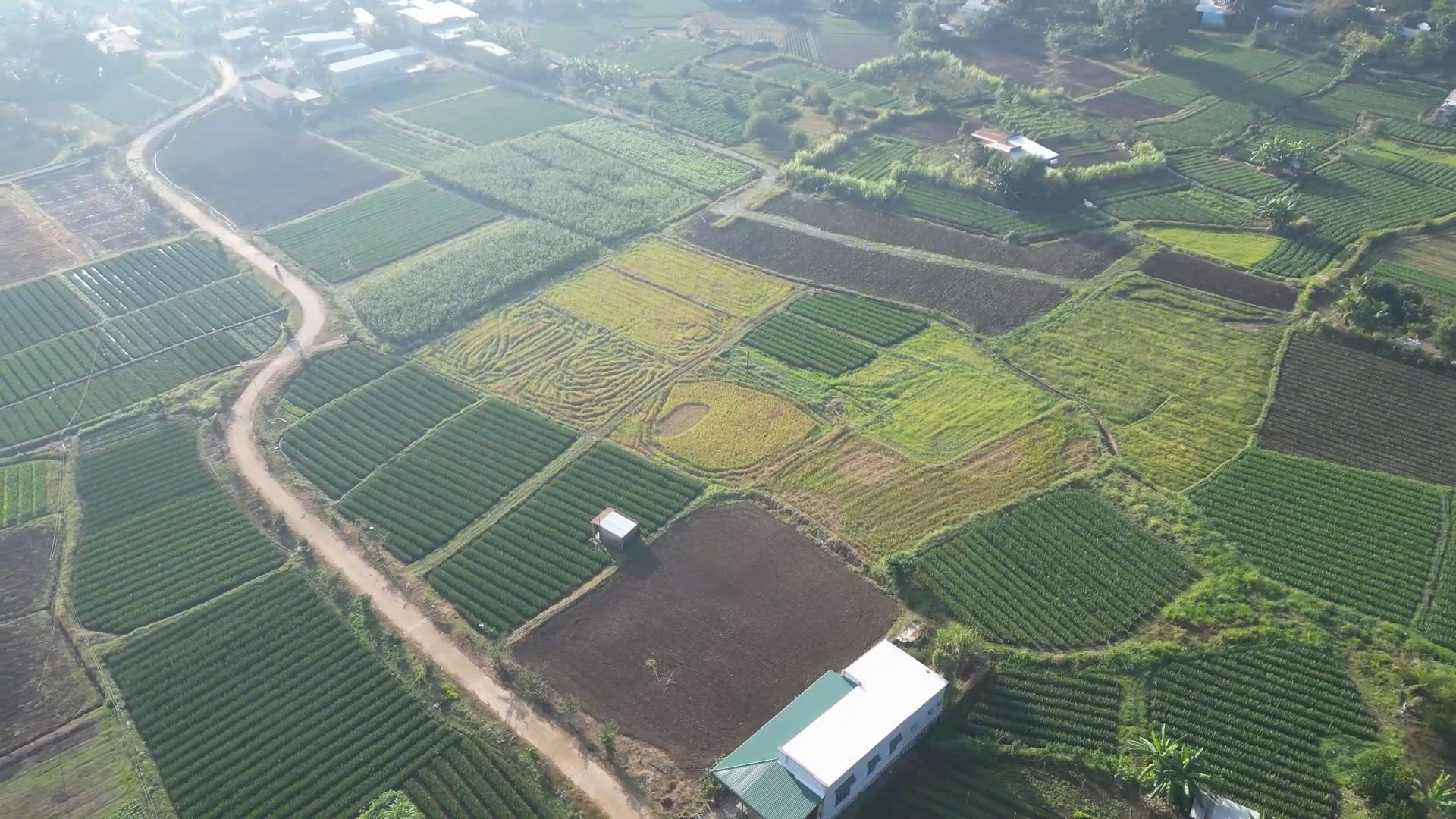 Hình ảnh chụp từ trên cao của làng trồng hoa ấp Trung Sơn