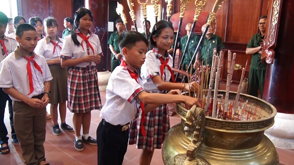 Các em học sinh thành kính dâng hương tưởng nhớ công ơn to lớn của Chủ Tịch Hồ Chí Minh, các anh hùng liệt sĩ