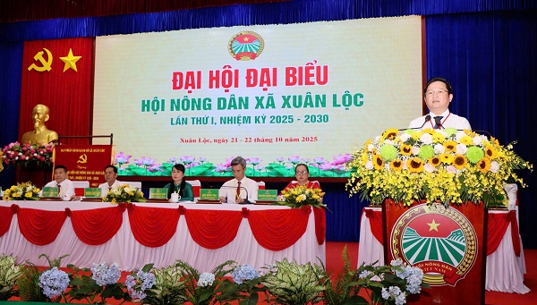 Sáng ngày 22-10, Hội Nông dân xã Xuân Lộc tổ chức phiên chính thức Đại hội đại biểu Hội Nông dân xã lần thứ I, nhiệm kỳ 2025-2030. Dự Đại hội có các đồng chí: Nguyễn Hữu Nguyên – Tỉnh ủy viên, Phó Chủ tịch Ủy ban Mặt trận Tổ quốc Việt Nam tỉnh, Chủ tịch Hội Nông dân tỉnh; Nguyễn Thị Cát Tiên – Bí thư Đảng ủy, Chủ tịch HĐND xã; Ngô Thị An – Phó Bí thư Thường trực Đảng ủy xã; Lê Khắc Sơn - Phó Bí thư Đảng ủy, Chủ tịch UBND xã, cùng 150 đại biểu chính thức đại diện cho 5.258 cán bộ, hội viên nông dân trong toàn xã.