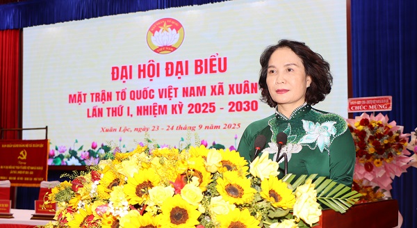 Cùng phát biểu tại Đại hội, đồng chí Nguyễn Thị Cát Tiên - Bí thư Đảng ủy, Chủ tịch HĐND xã Xuân Lộc biểu dương những đóng góp của MTTQ trong nhiệm kỳ qua. Đồng chí nhấn mạnh: "Với tinh thần “Đoàn kết - Dân chủ - Đổi mới - Phát triển”, tin tưởng rằng Đại hội đại biểu MTTQ Việt Nam xã Xuân Lộc lần thứ I, nhiệm kỳ 2025 - 2030 sẽ là dấu mốc mới, khơi dậy truyền thống cách mạng vẻ vang của quê hương Xuân Lộc anh hùng, tập hợp toàn thể cán bộ, đảng viên và Nhân dân Xuân Lộc tiếp tục nêu cao tinh thần yêu nước, yêu quê hương, ý chí tự lực, tự cường, đoàn kết nhất trí, luôn luôn khát vọng vì sự phát triển của quê hương, ra sức thi đua thực hiện thắng lợi các mục tiêu, nhiệm vụ đã đề ra, xây dựng xã Xuân Lộc ngày càng giàu đẹp, văn minh, đóng góp quan trọng vào sự nghiệp phát triển bền vững của tỉnh nhà.