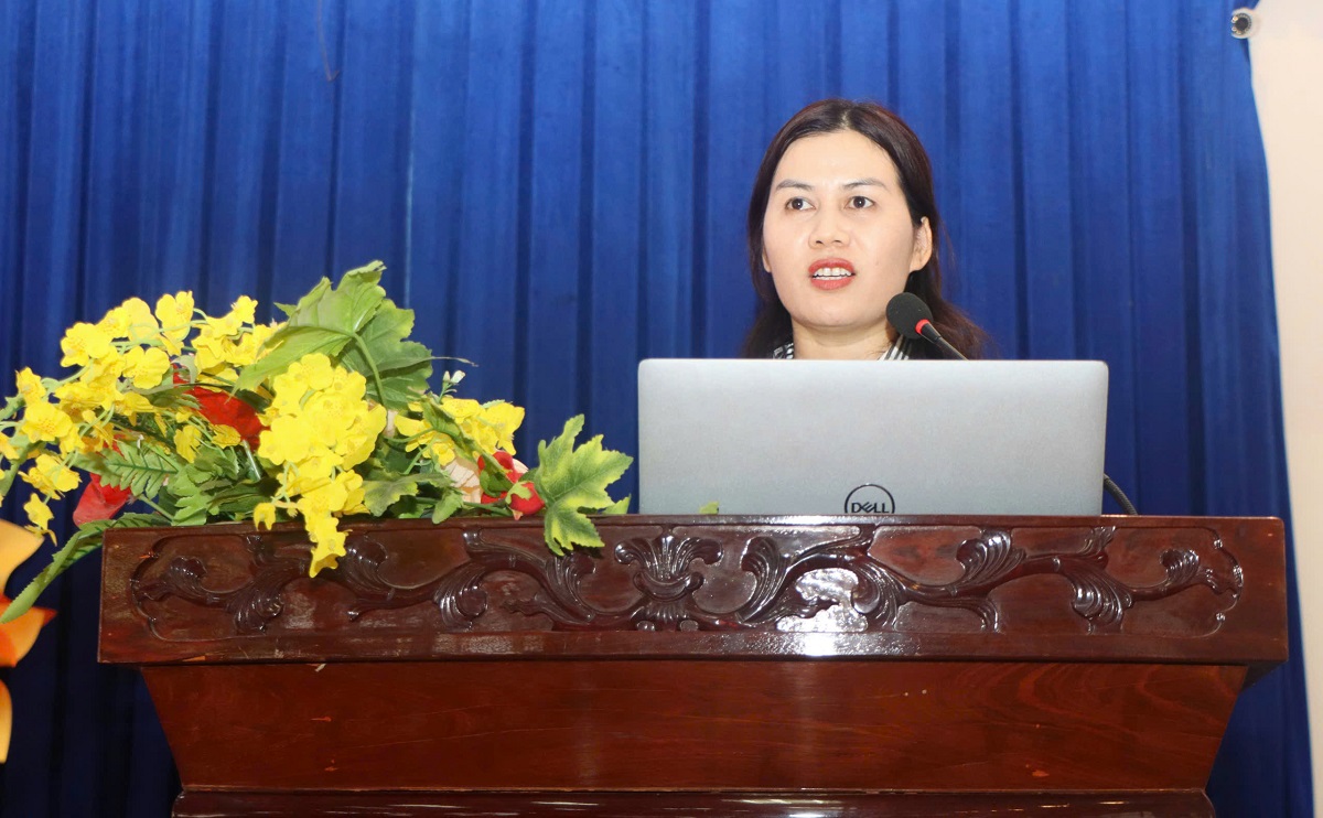Bà Nguyễn Thị Mai, Phó Chủ tịch Ủy ban MTTQ Việt Nam xã, Chủ tịch Hội Liên hiệp Phụ nữ xã Xuân Lộc phát biểu tại Hội nghị