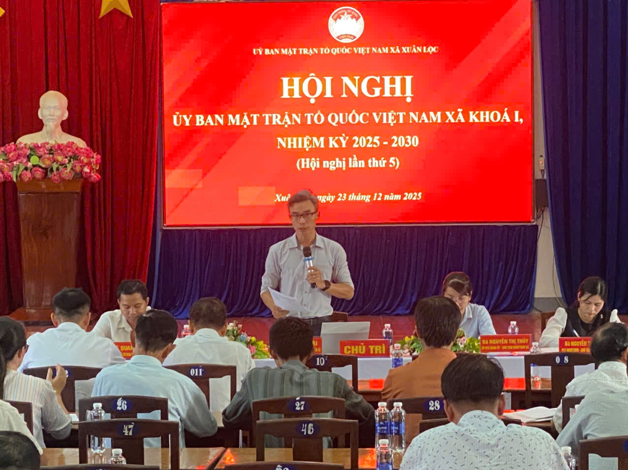 Ngày 23/12, Ủy ban Mặt trận Tổ quốc Việt Nam xã Xuân Lộc tổ chức Hội nghị Ủy viên Ủy ban Mặt trận Tổ quốc Việt Nam xã khóa I, nhiệm kỳ 2025-2030 lần thứ 5 năm 2025.