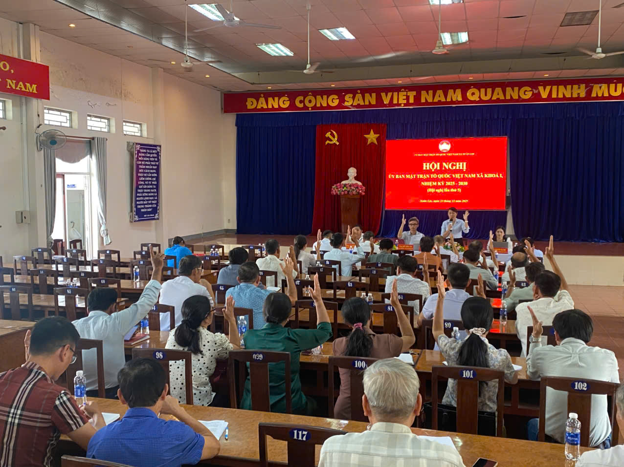 Các vị Ủy viên Ủy ban MTTQ Việt Nam xã biểu quyết lấy ý kiến