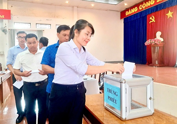 Các đại biểu bỏ phiếu nhân sự quy hoạch hoạch cán bộ Ủy ban MTTQ Việt Nam xã nhiệm kỳ 2025 – 2030.
