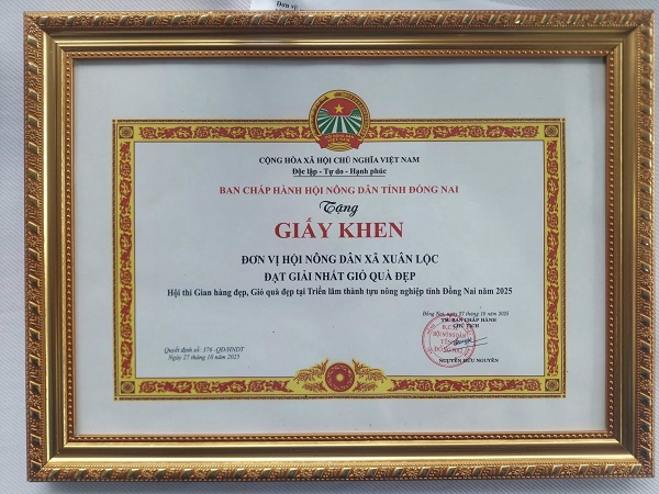 Tại hội thi gian hàng đẹp, giỏ quà đẹp triển lãm thành tựu nông nghiệp tỉnh Đồng Nai năm 2025, đơn vị Hội Nông dân xã Xuân Lộc đã xuất sắc đạt giải nhất giỏ quà đẹp, đạt giải ba gian hàng đẹp.
