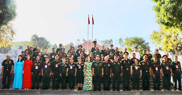 Các đại biểu chụp hình lưu niệm tại Đền thờ liệt sĩ Xuân Lộc