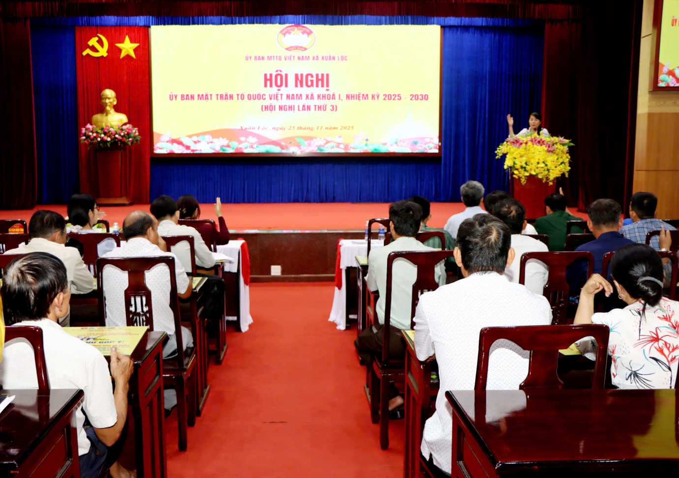 Chiều 25-11, Ủy ban MTTQ Việt Nam xã Xuân Lộc khóa I tổ chức Hội nghị lần thứ ba nhằm hiệp thương cử Ủy viên, Ban Thường trực và chức danh Phó Chủ tịch Ủy ban MTTQ Việt Nam xã nhiệm kỳ 2025-2030.