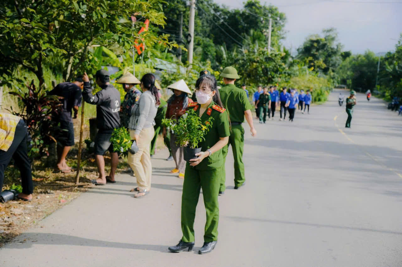 Cán bộ, chiến sĩ, đoàn viên, hội viên và nhân dân tham gia trồng cây chỉnh trang diện mạo nông thôn.