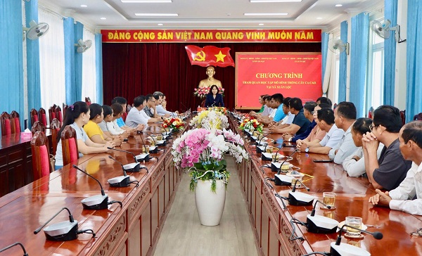 Tiếp đó, đoàn đã ghé tham quan thực tế tại Hợp tác xã Dịch vụ nông nghiệp Ca cao Xuân Lộc. Tại đây, đoàn được trao đổi kinh nghiệm về quy trình trồng, chăm sóc và thu hoạch Ca cao; thị trường xuất khẩu và các nội dung có liên quan.