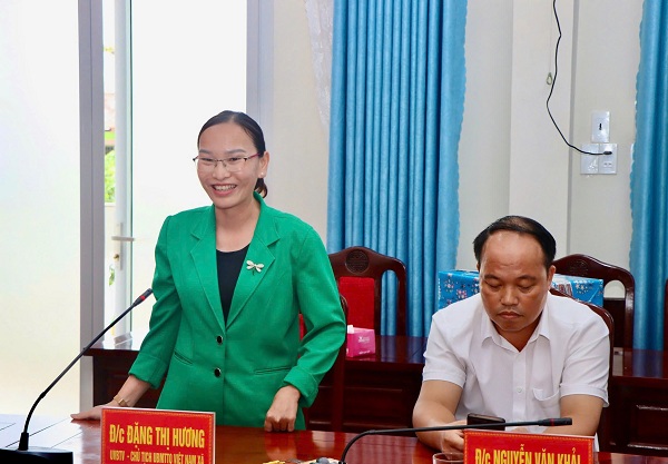 Đồng chí Đặng Thị Hương, Chủ tịch UBMTTQVN xã Bù Gia Mập phát biểu tại buổi làm việc