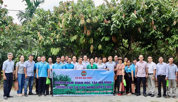 Đoàn công tác Hội Nông dân xã Bù Gia Mập ghé tham quan thực tế tại Hợp tác xã Dịch vụ nông nghiệp Ca cao Xuân Lộc