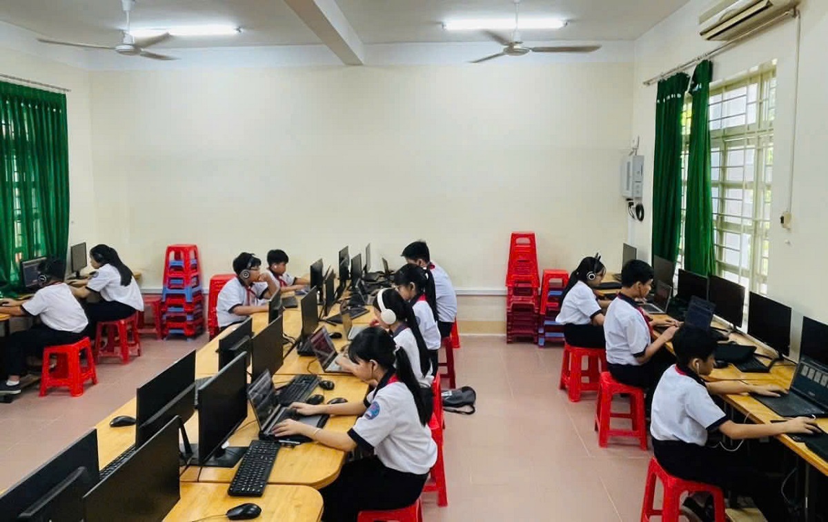Học sinh thực hành tại phòng tin học, đẩy mạnh ứng dụng công nghệ thông tin trong dạy và học