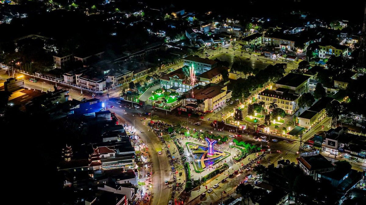 Toàn cảnh Xuân Lộc về đêm lung linh ánh sáng, thể hiện sự chuyển mình mạnh mẽ hướng tới đô thị hiện đại