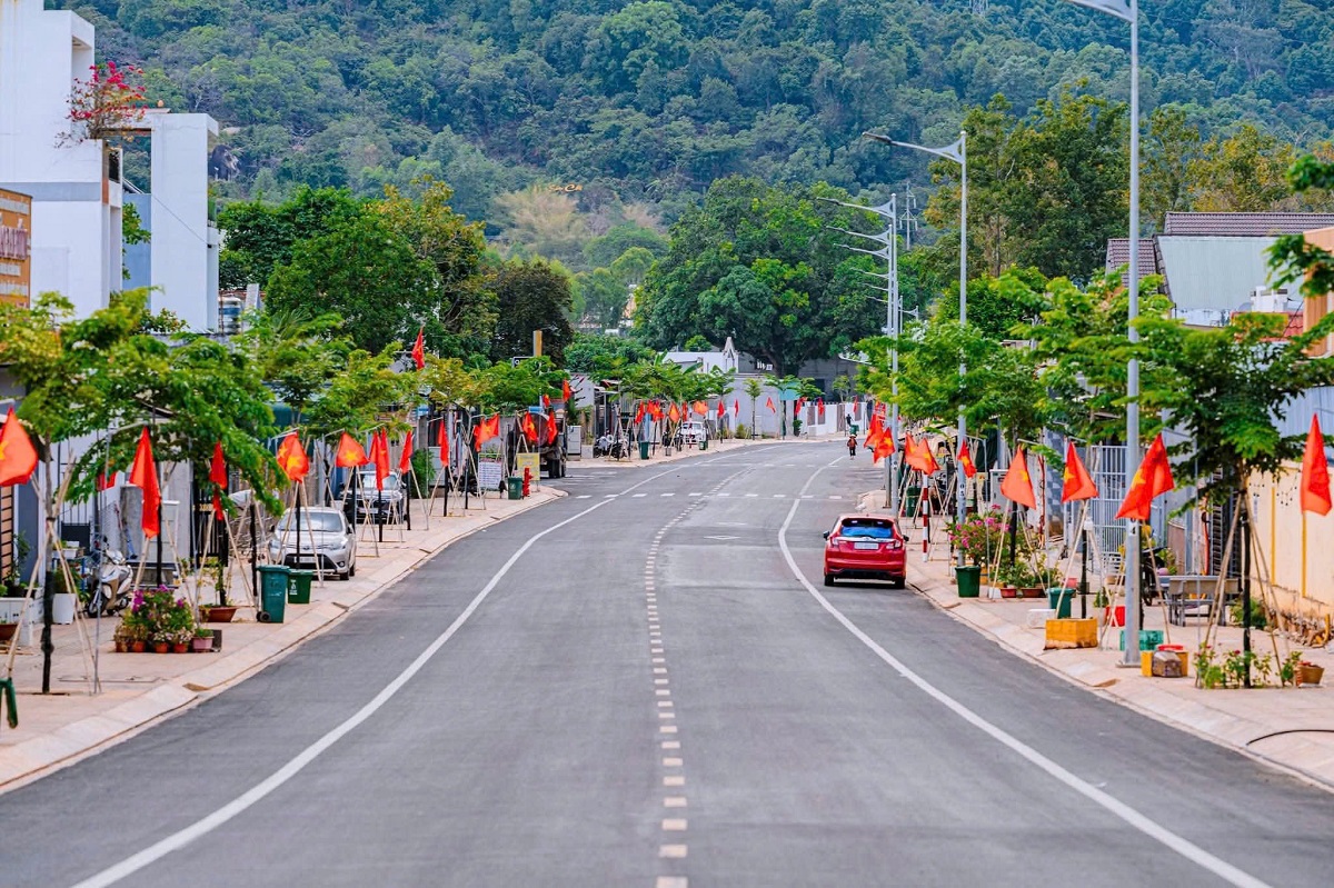 Tuyến đường Hoàng Đình Thương được đầu tư khang trang, sạch đẹp, rợp cờ đỏ sao vàng