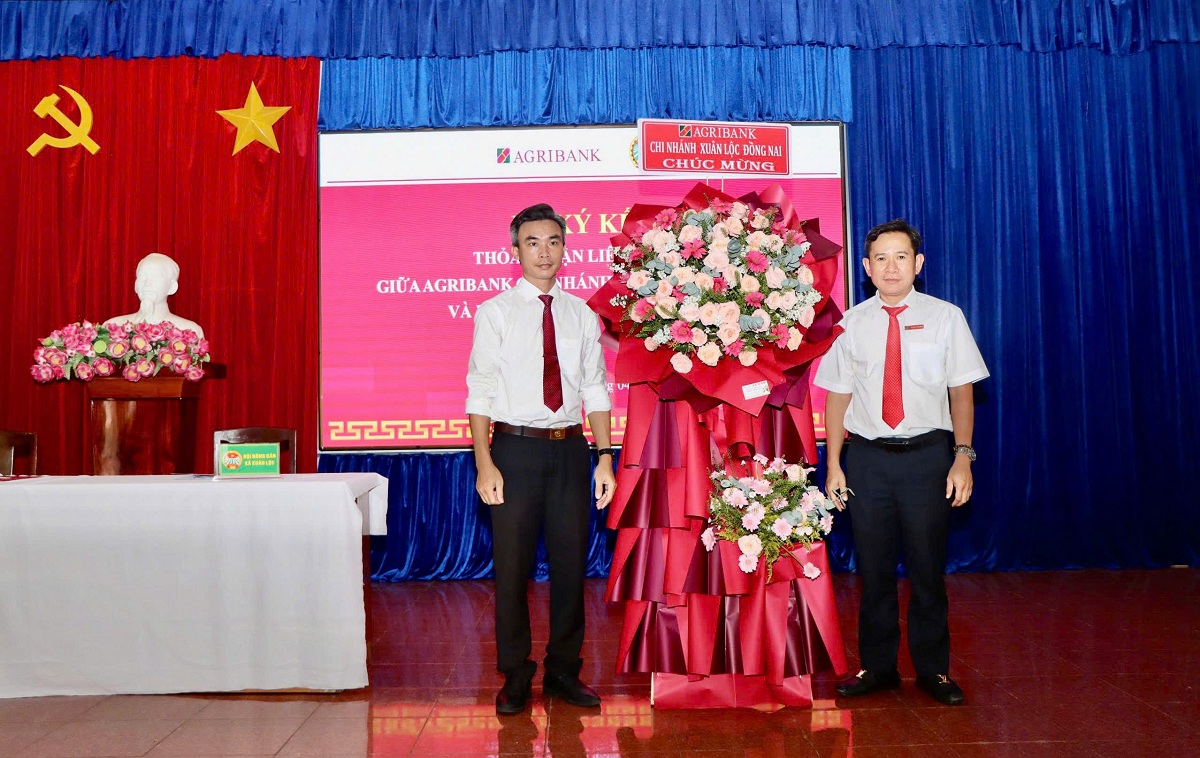 <figcaption>Agribank Chi nhánh Xuân Lộc tặng hoa chúc mừng</figcaption>