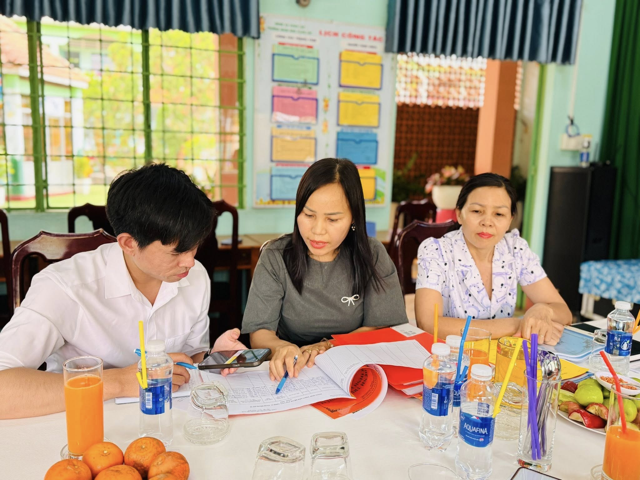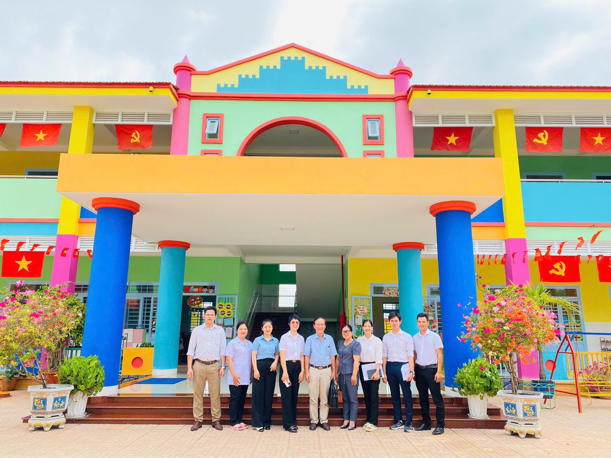 <figcaption>Đoàn kiểm tra làm việc tại Trường mầm non Xuân Lộc</figcaption>