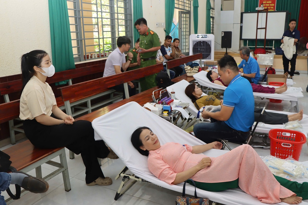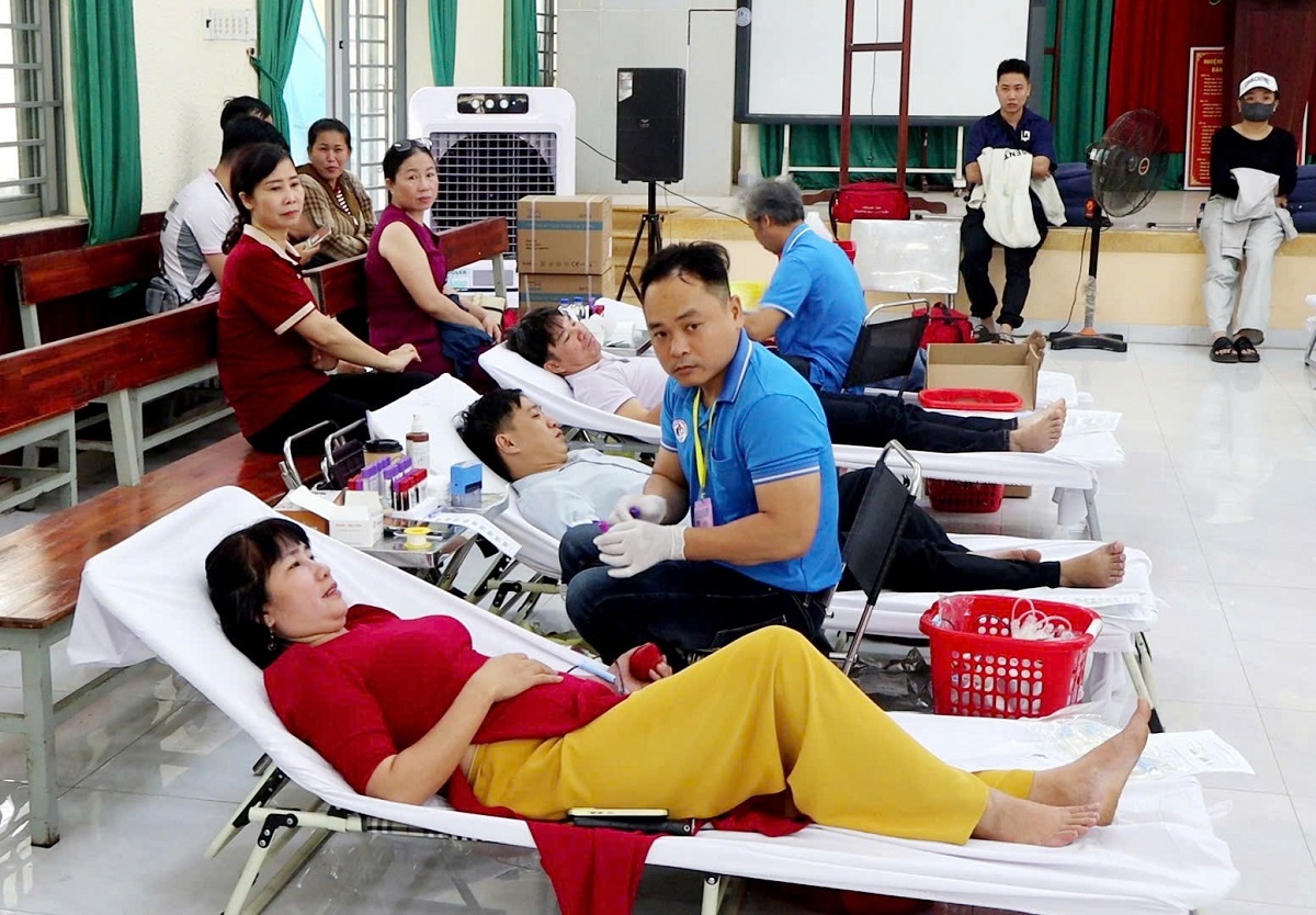 <figcaption>Cán bộ, công chức, viên chức, giáo viên, học sinh đủ 18 tuổi các trường THPT trên địa bàn xã, người lao động, lực lượng vũ trang và nhân dân trên địa bàn xã Xuân Lộc tích cực tham gia hiến máu</figcaption>