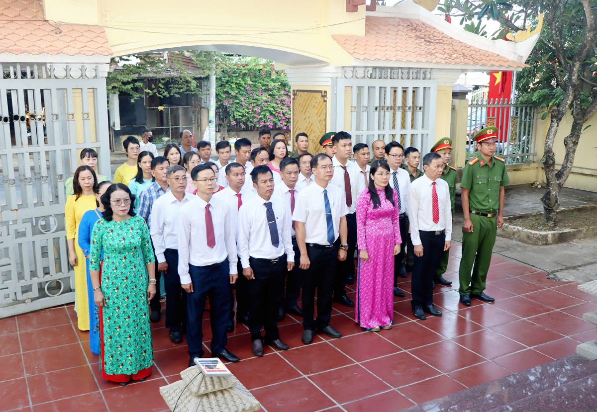 <span style="color:rgb(0, 0, 0);"><span style="font-size:16px;"><span style="font-family:Arial,Helvetica,sans-serif;">Tại đền thờ Liệt sĩ Xuân Trường, đoàn lãnh đạo xã do đồng chí Lê Khắc Sơn, Phó Bí thư Đảng ủy, Chủ tịch UBND xã &nbsp;làm trưởng đoàn đã đến viếng, dành phút tưởng niệm và dâng hương tưởng nhớ 106 anh hùng liệt sĩ đã hi sinh qua 2 cuộc kháng chiến chống Pháp và chống Mỹ cứu nước. Cùng dự có các đồng chí: Nguyễn Thị Thủy, Ủy viên Ban Thường vụ, Chủ tịch Ủy ban MTTQ Việt Nam xã; Đinh Văn Bình, Đảng ủy viên, Phó Chủ tịch HĐND xã; lãnh đạo Ban Xây dựng Đảng , Ủy ban Kiểm tra; Văn Phòng HĐND và Ủy ban Nhân dân xã; Ban Giám hiệu các trường học; các đồng chí Bí thư, Trưởng các ấp(thuộc xã Xuân Trường cũ).</span></span></span>