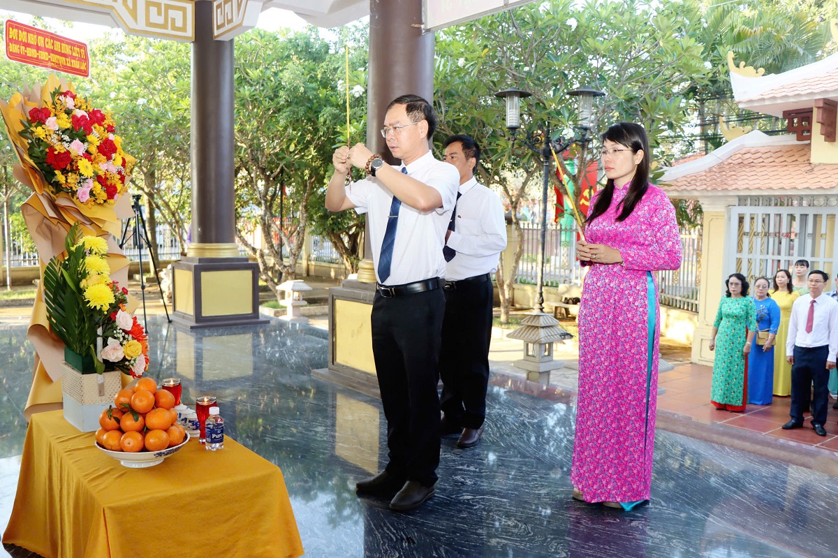 <figcaption>Đồng chí Ngô Thị An, Phó Bí thư Đảng ủy dâng hương viếng tại đền thờ Liệt sĩ Xuân Thọ</figcaption>