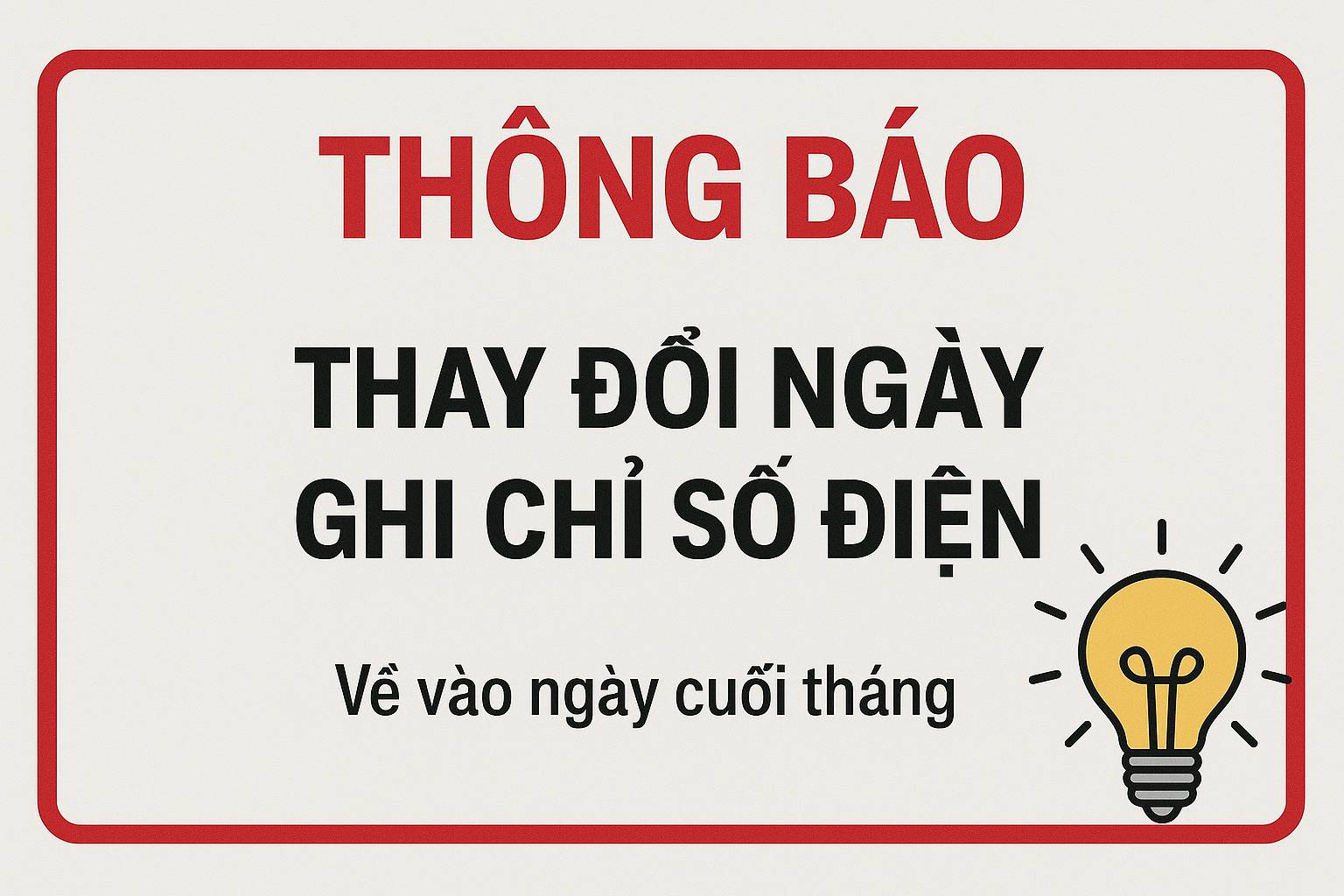 Thông báo thay đổi ngày ghi chỉ số điện về ngày cuối tháng