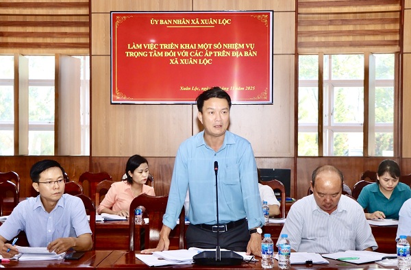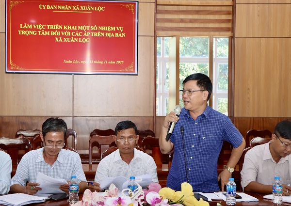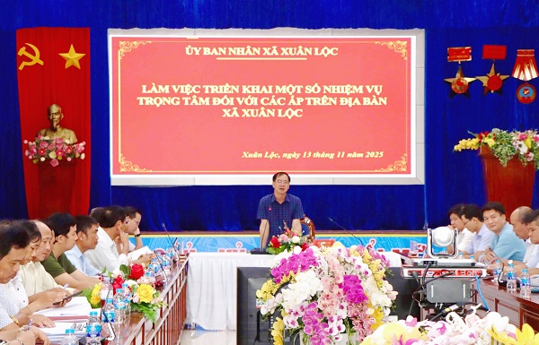 Sáng 13-11, Uỷ ban nhân dân xã Xuân Lộc tổ chức Hội nghị triển khai một số nhiệm vụ trọng tâm đối với các ấp trên địa bàn xã Xuân Lộc. Đồng chí Lê Khắc Sơn, Phó Bí thư Đảng uỷ, Chủ tịch UBND xã chủ trì hội nghị.