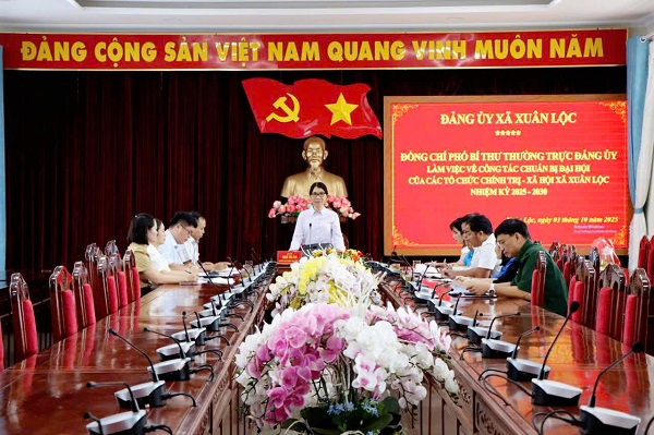 Đồng chí Ngô Thị An - Phó Bí thư Thường trực Đảng ủy xã làm việc về công tác chuẩn bị Đại hội của các tổ chức chính trị - xã hội xã Xuân Lộc nhiệm kỳ 2025-2030