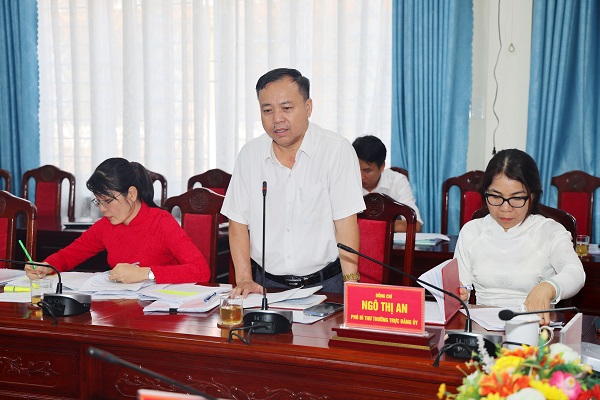 Đồng chí Nguyễn Văn Mẫn, Trưởng Ban Xây dựng Đảng xã Xuân Lộc báo cáo tại buổi làm việc